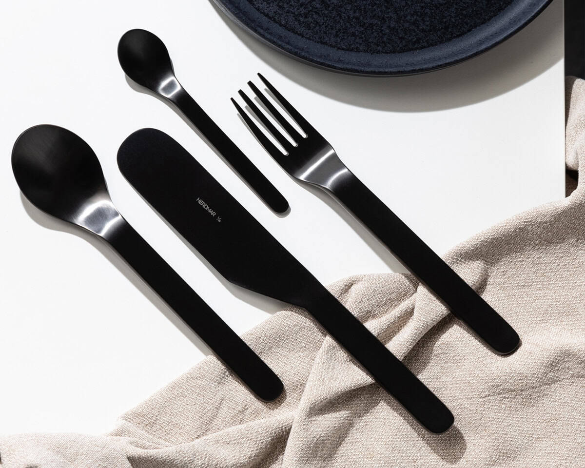 Dimensions: Table spoon 20 cm, Fork 20 cm, Knife 23 cm, Tea spoon 13 cm.